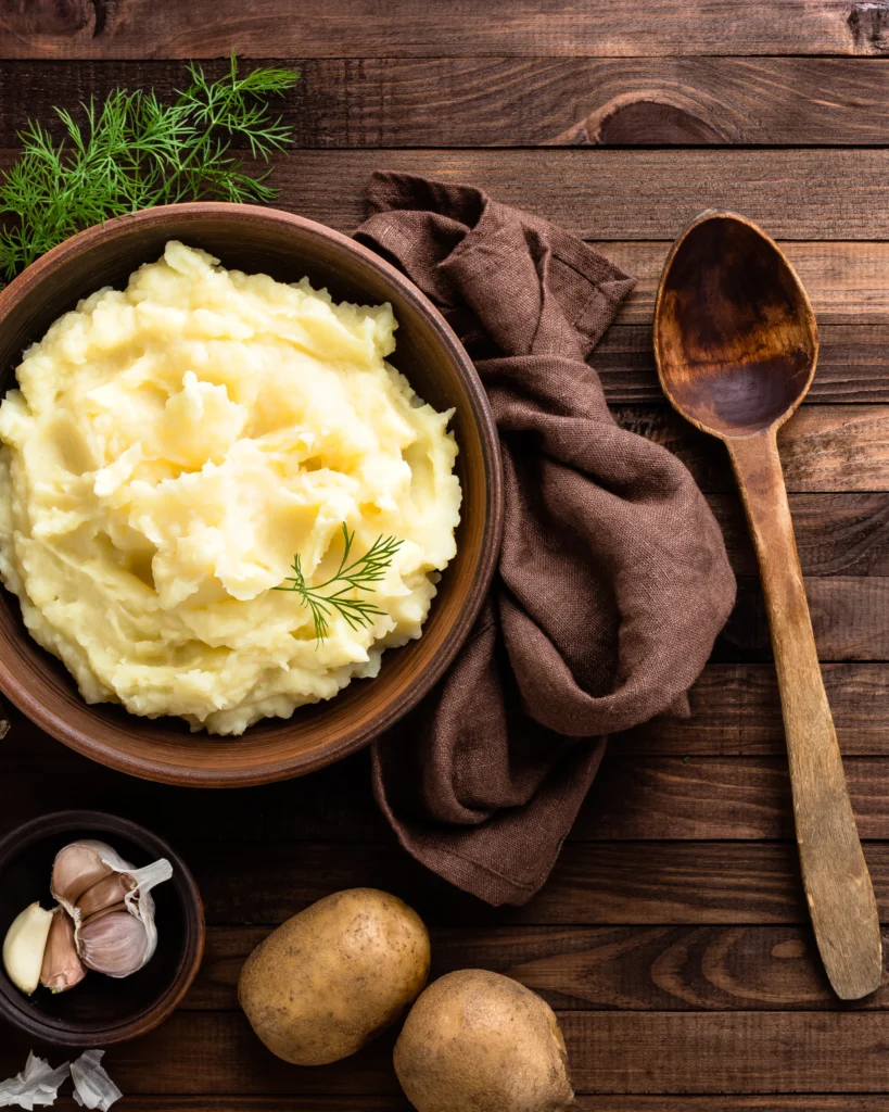 Temps de cuisson : 20-25 minutes Épluchez et coupez les pommes de terre en morceaux. Faites-les cuire dans de l’eau bouillante salée jusqu’à ce qu’elles soient tendres. Égouttez, puis écrasez-les avec du beurre et du lait chaud jusqu’à obtenir une texture lisse. Assaisonnez selon votre goût.